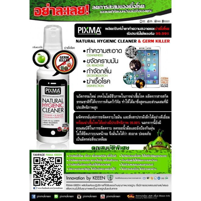(ฆ่าเชื้อไวรัส) PIXMA KREEN ผลิตภัณฑ์ทำความสะอาดพร้อมฆ่าเชื้อโรค 3 in 1