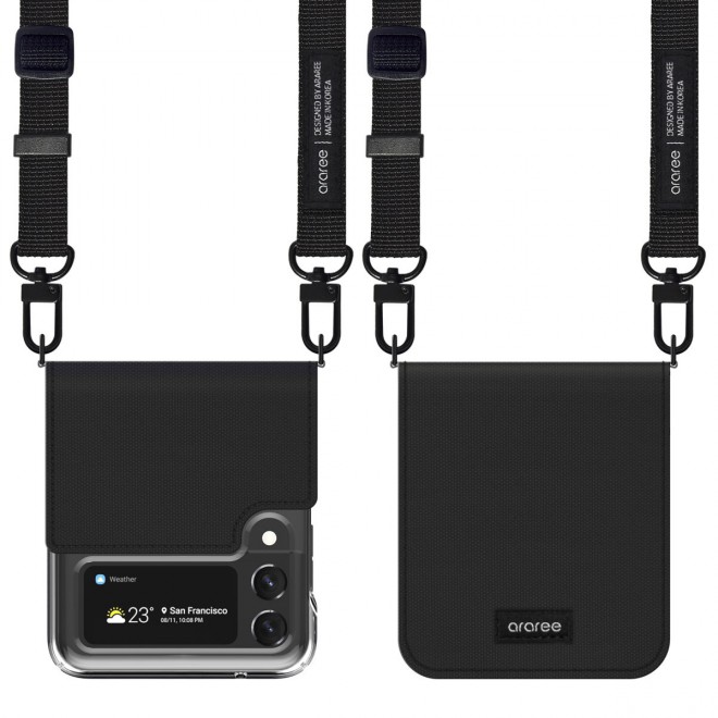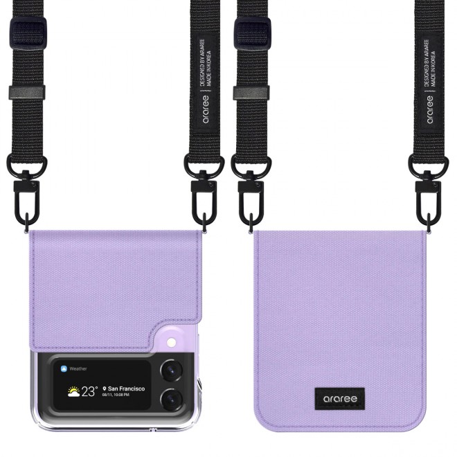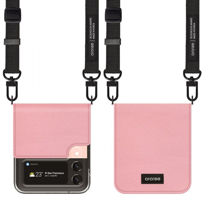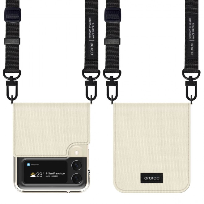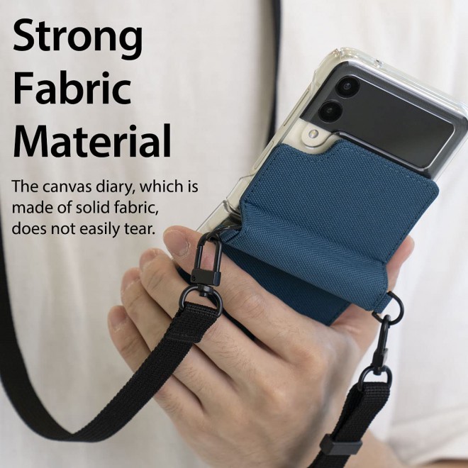 เคสทรงกระเป๋าสะพาย Canvas Diary จาก Araree เคสใสหุ้มผ้าแคนวาสสีสวย ให้ลุคแฟชั่นเกาหลีแท้ๆ มาพร้อมสายคล้องปรับความยาวได้เหมือนสะพายกระเป๋า ช่วยให้คุณพกพาโทรศัพท์ Galaxy Z Flip ติดตัวไปได้ทุกที่ ไม่หลงลืม ไม่ต้องกลัวหลุดมือ