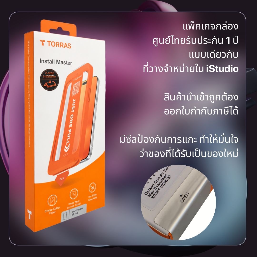 TORRAS ฟิล์มกระจก Install Master Screen Protector สำหรับ iPhone 17 Pro Max / 17 Pro