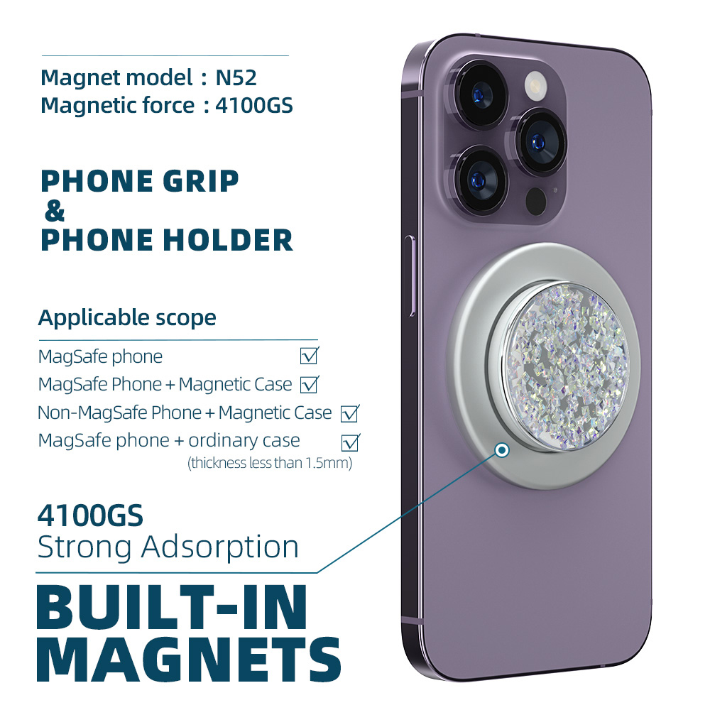 FenixShield Eleganz Snap SILVER SPARKING Magnetic Grip Holder Stand